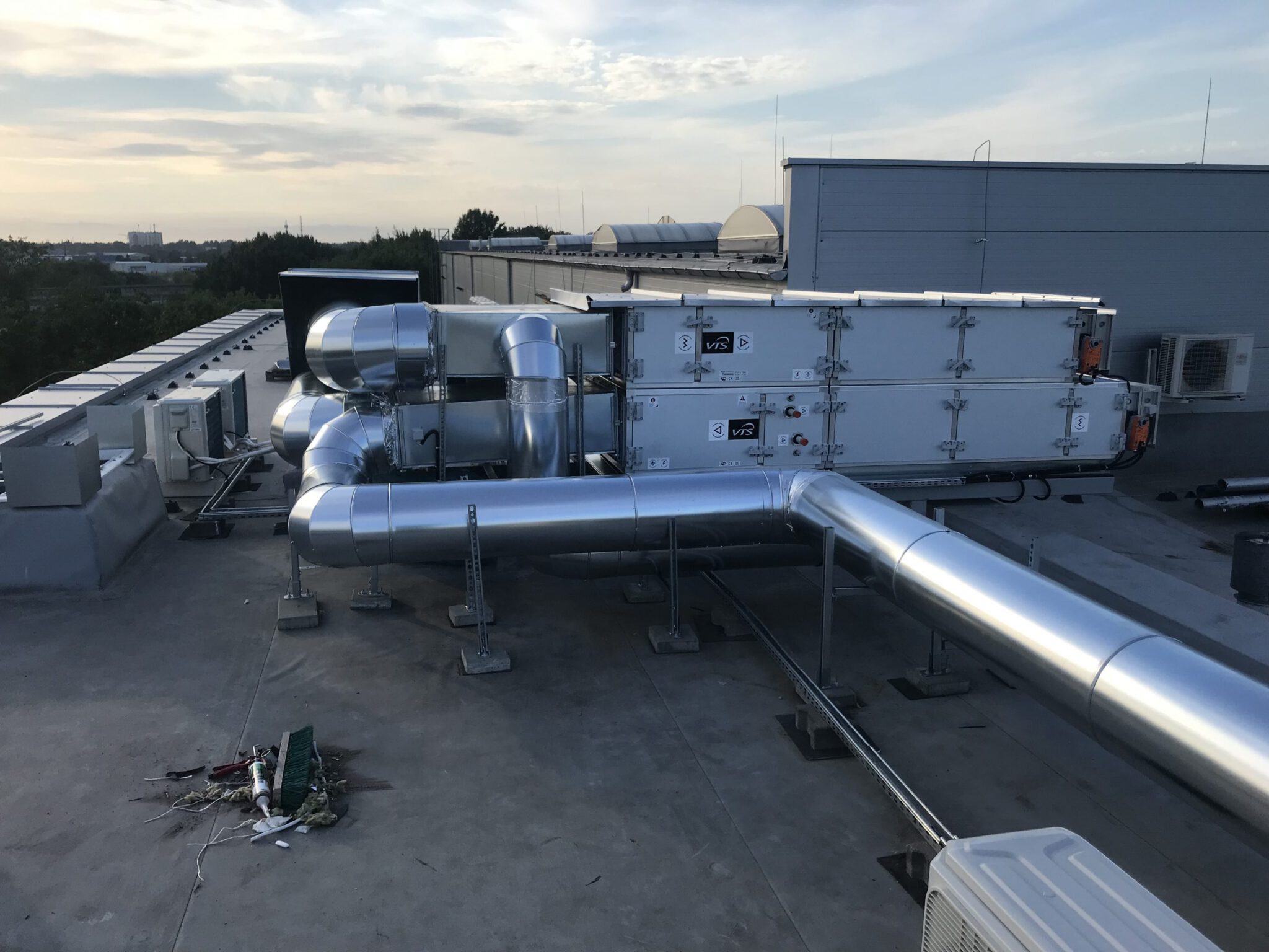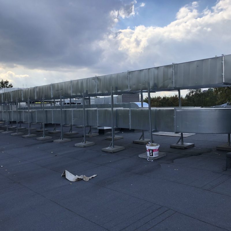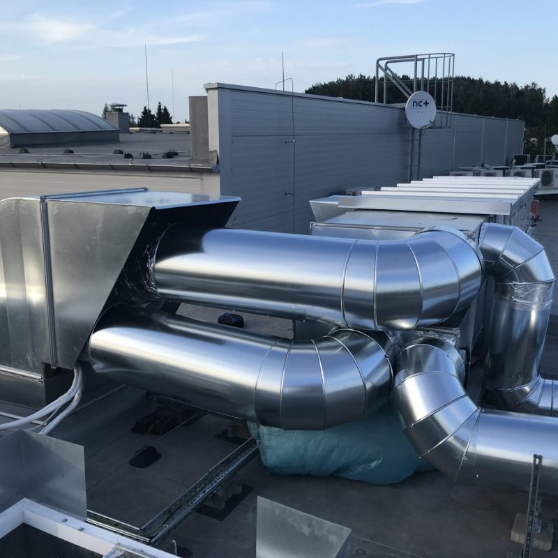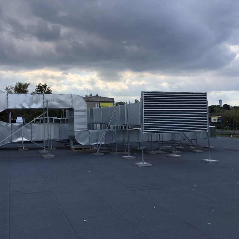Łącznie zamontowano 9 central wentylacyjnych, w tym największą o wydajności około 30 000 m3/h