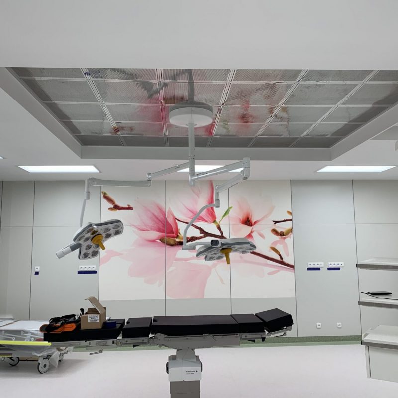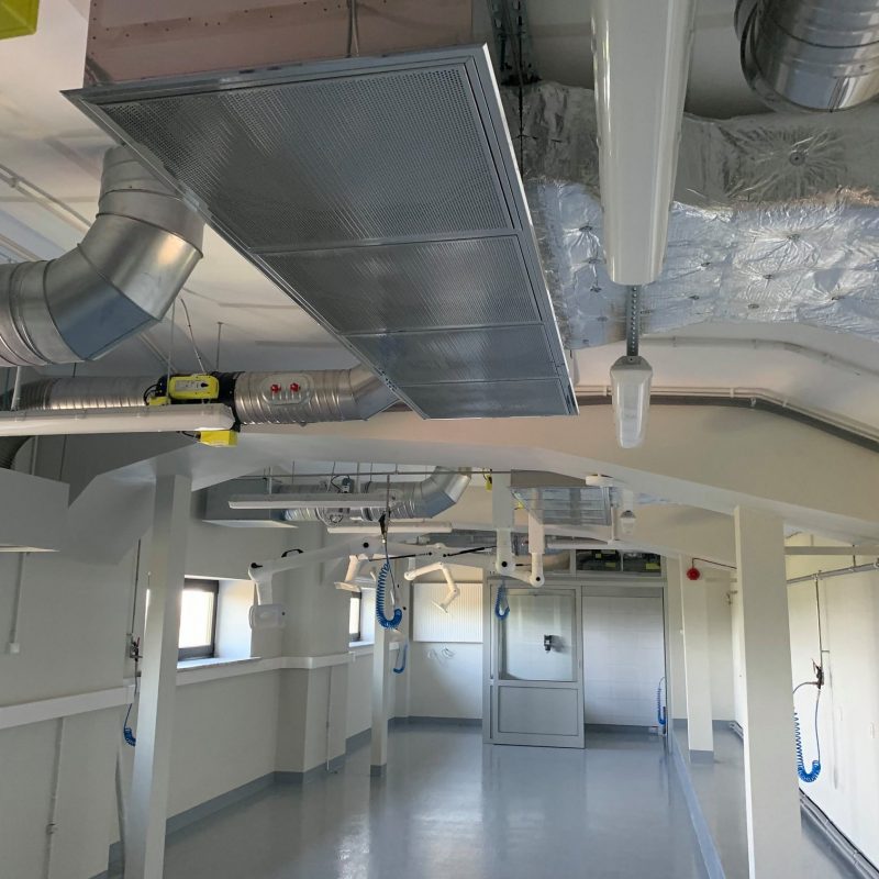 Zakres: Wykonanie instalacji wentylacji nawiewno-wywiewnej sali operacyjnej w oparciu o centrale wentylacyjną oraz sufit laminarany wyposażony w filtry HEPA. Cała instalacja wykonana w obrębie Sali z kanałów ze stali nierdzewnej. Wykonano również wentylację pomieszczeń bloku operacyjnego, w gabinetach badań oraz pomieszczeniach socjalnych.